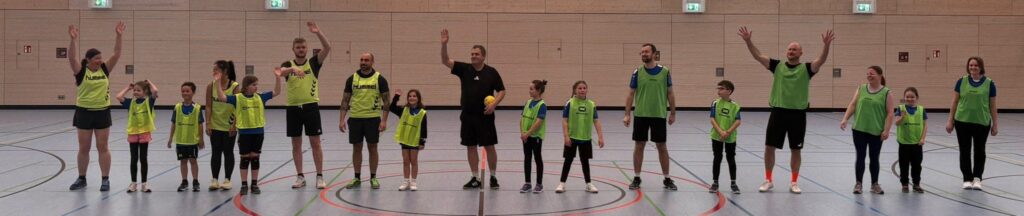 Zum Abschluss ihrer Zeit in der Minimannschaft erlebten unsere „großen Minis“ ein ganz besonderes Highlight: das Eltern-Kind-Turnier. Bevor sie in die E-Jugend wechseln, durften sie zum ersten Mal auf dem großen Feld spielen – und das mit tatkräftiger Unterstützung ihrer Eltern. Insgesamt traten drei Mannschaften gegeneinander an. Dabei stand nicht das Ergebnis im Vordergrund, sondern vor allem die Freude am Spiel und das gemeinsame Erlebnis. Ein gelungener Abschluss für unsere Minis und ein schöner Übergang in die nächste Handballstufe!